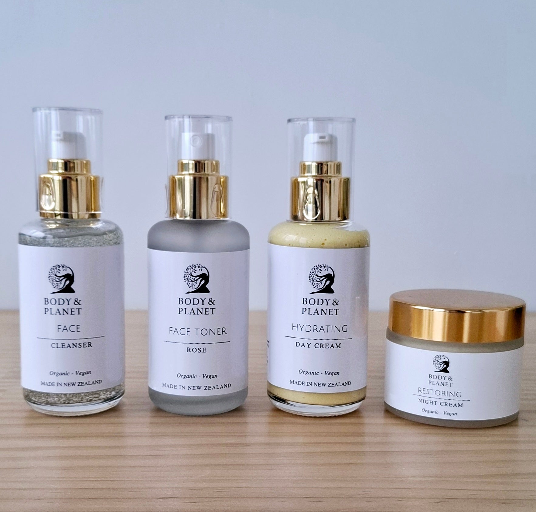 Your complete everyday ritual – this organic, vegan skincare set includes our nourishing day cream, restorative night cream, refreshing rose toner, and gentle cleanser. Designed to hydrate, balance, and care for your skin naturally.